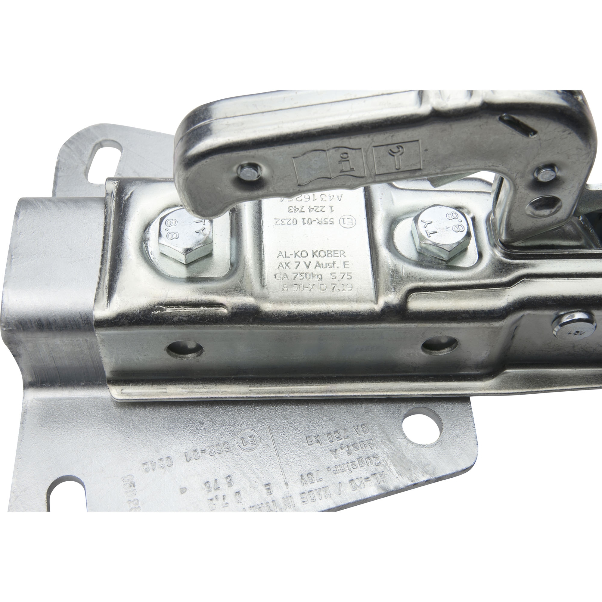 Accouplement à boule AL-KO AK 7 Plus - 75 V version A Timon V Charge d‘essieu 750 kg Charge d‘appui 75 kg Trou Ø 12,0 mm Distance entre les trous 100 / 130 / 160 mm