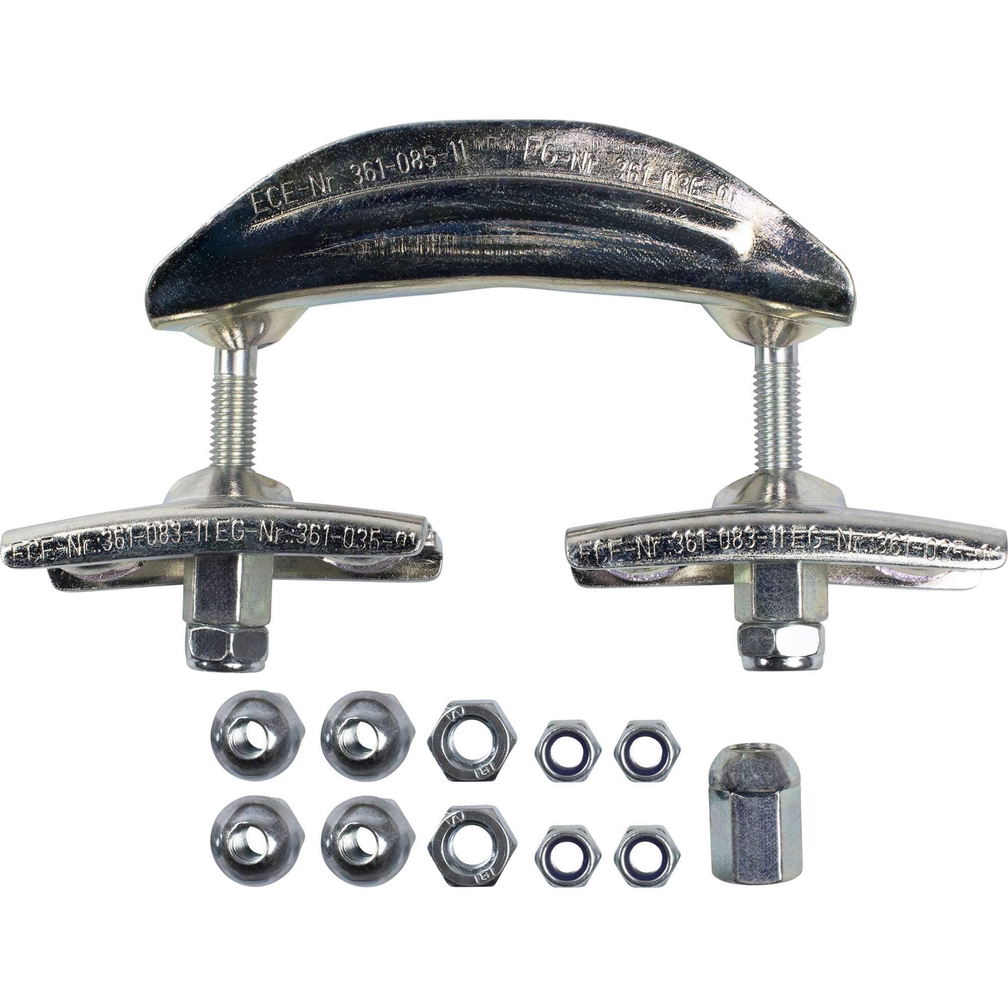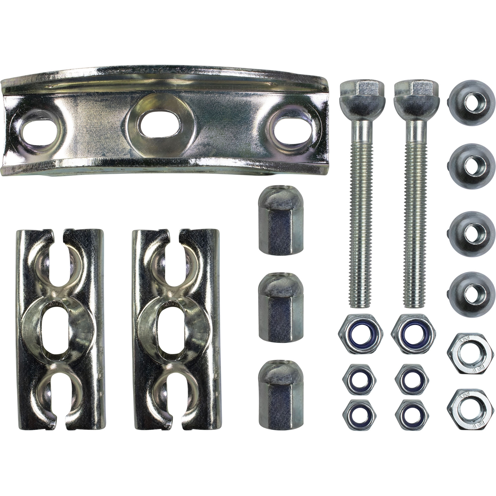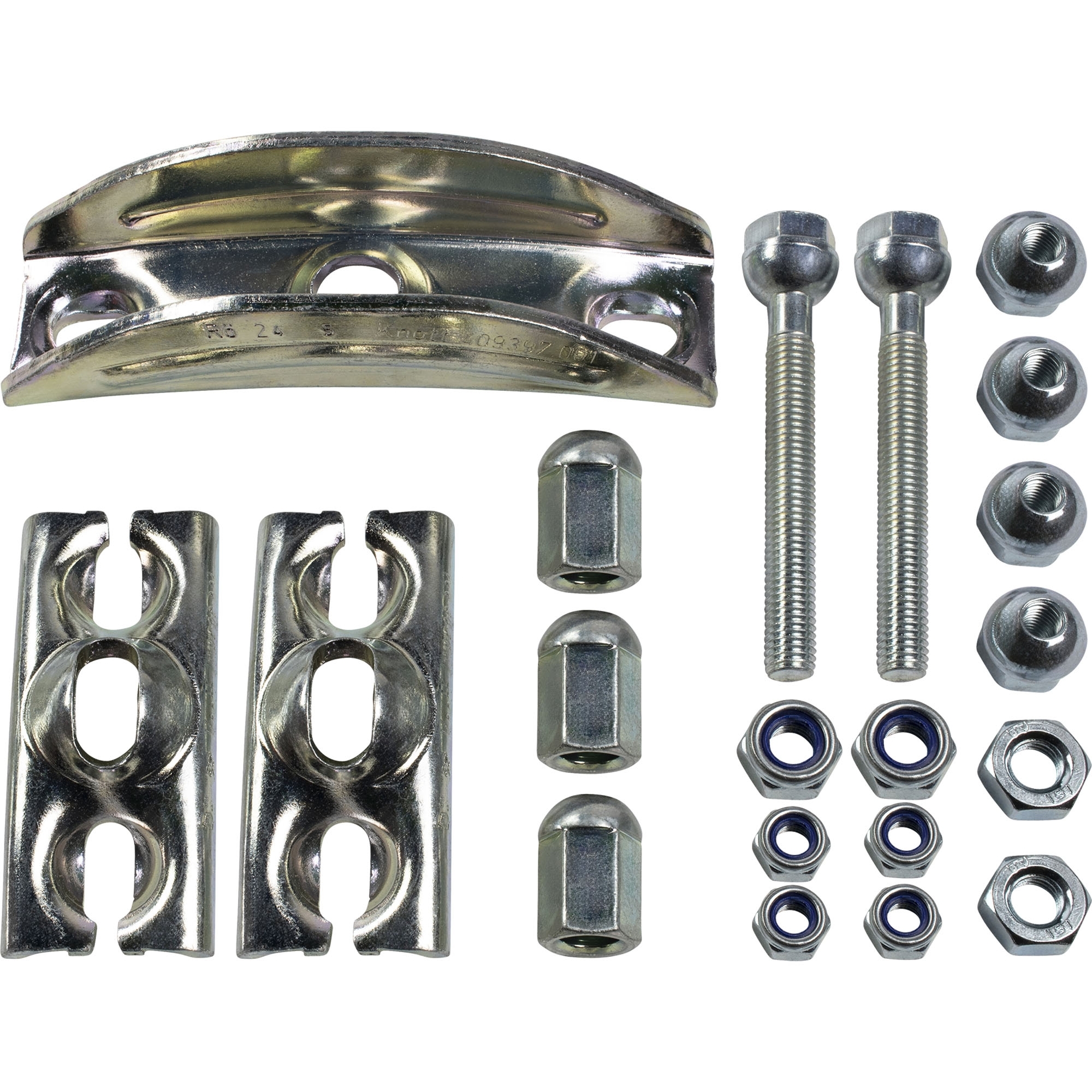 Kit tringlerie de frein pour 2 essieux Set M 10, SANS TIGE DE FREIN Contenu 3 pièces de balances de compensation 1 pièce de bride M10 1 pièce de bride de serrage conique M10 8 pièces de vis conique M10 8 pièces de vis à six pans M8 4 pièces de vis à six pans M10