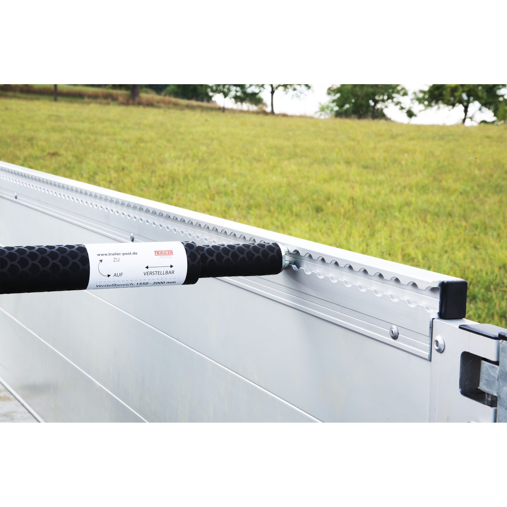 Barre de blocage de charge "FRITZ" en aluminium avec gaine de protection Avec embout mixte Ø 19 /24 mm et fente de 9 mm Pour rail aviation, rail d'arrimage à trous rond, ou à barreau et rail mixte, Réglable de 1000 à 1400 mm Ajustage rapide et verrouillage rapide de la barre par rotation du tube intérieur Charge maxi. 200 daN Barre Ø 42,5 mm