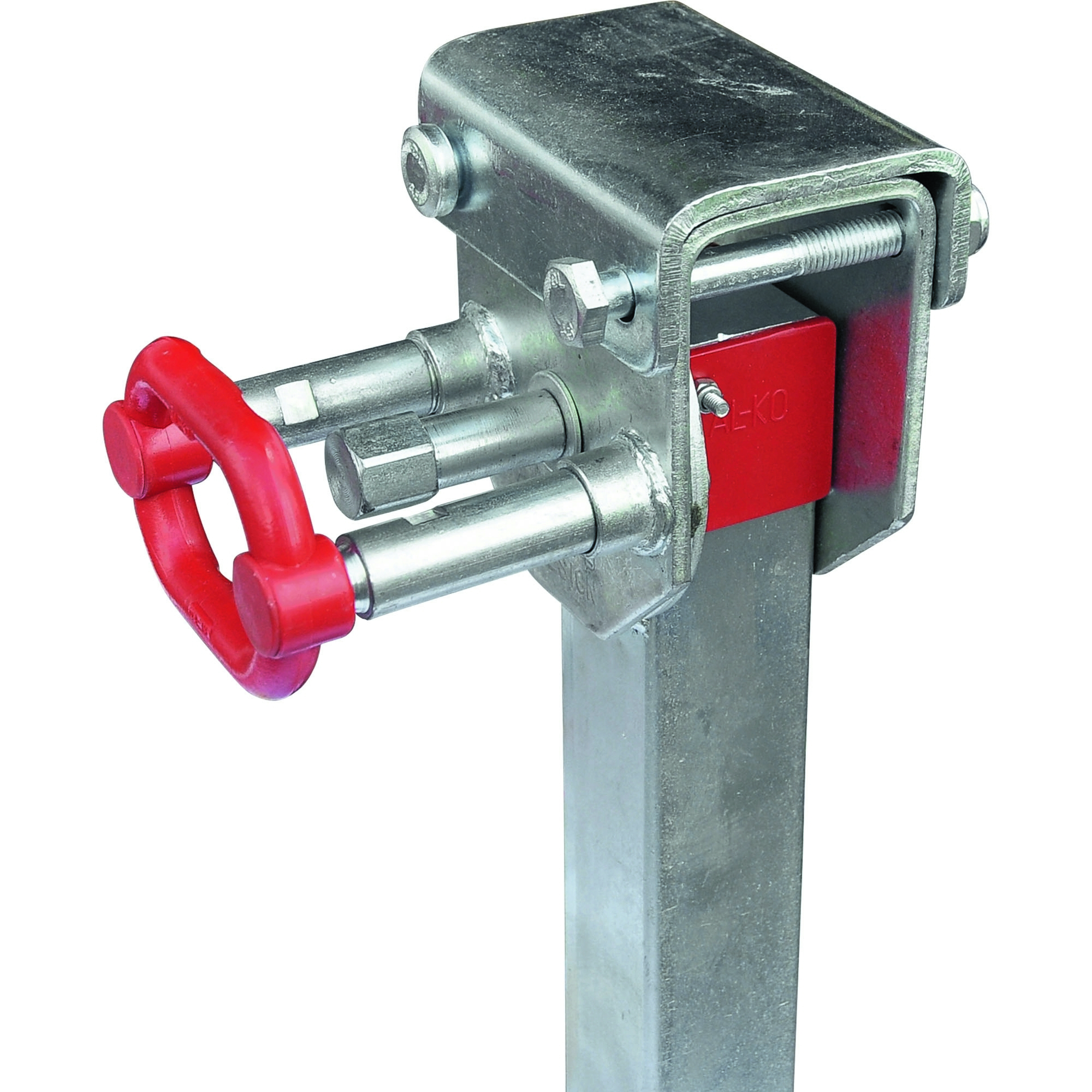 Support à levage pivotant sur le côté carré 45 x 45 mm Longueur : 410 mm, Course : 180 mm, max. 500 kg/pièce sans manivelle Dégagement au sol requis : 450-500 mm Poids : 5,0 kg