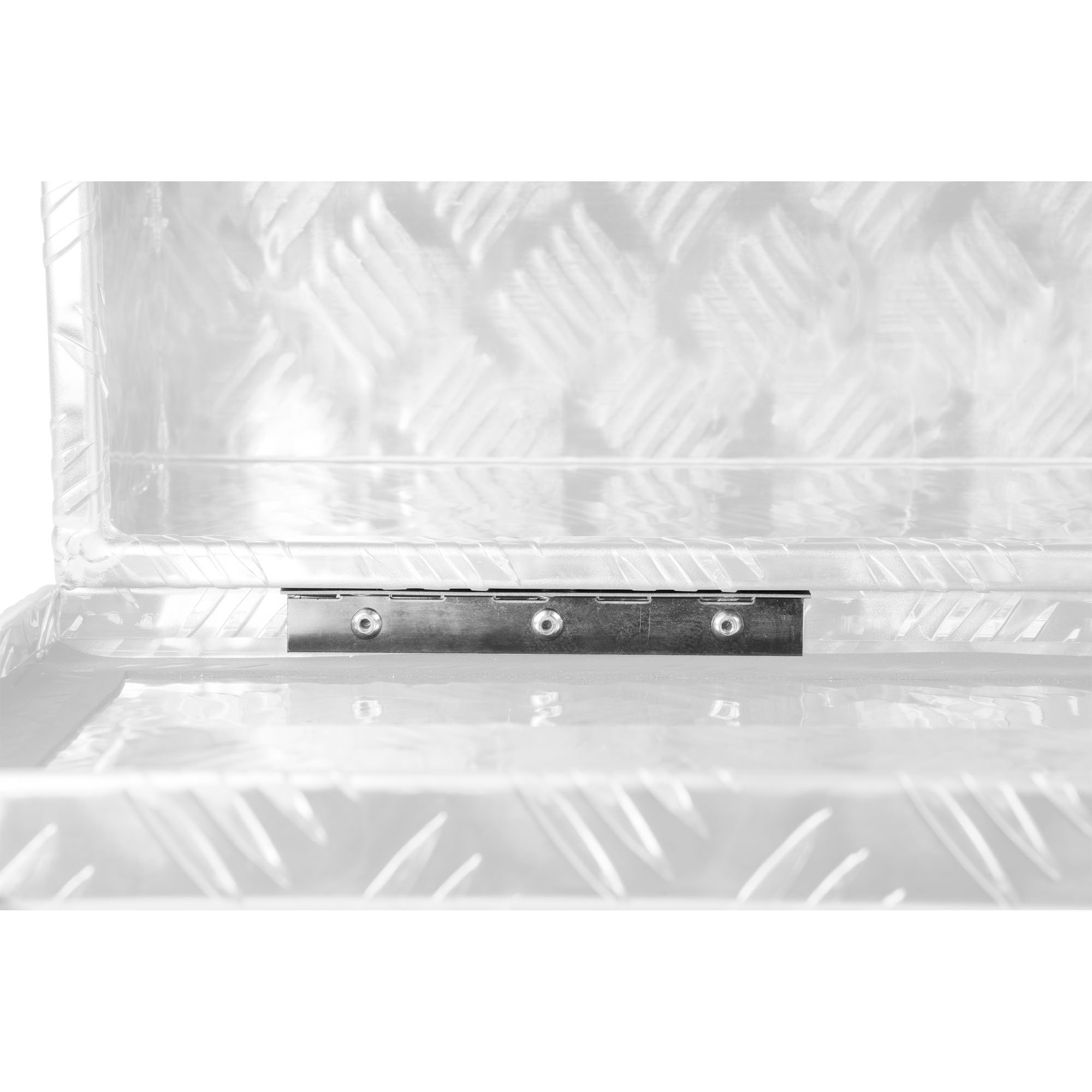 Coffre à outils pour timon en V sans support Largeur 864/406 mm Profondeur 457 mm Hauteur 482 mm Matériau Aluminium verrouillable Incl. 2 clés Ferrures en V2A éclaboussures protégé couvercle avec assistance à ressort à gaz