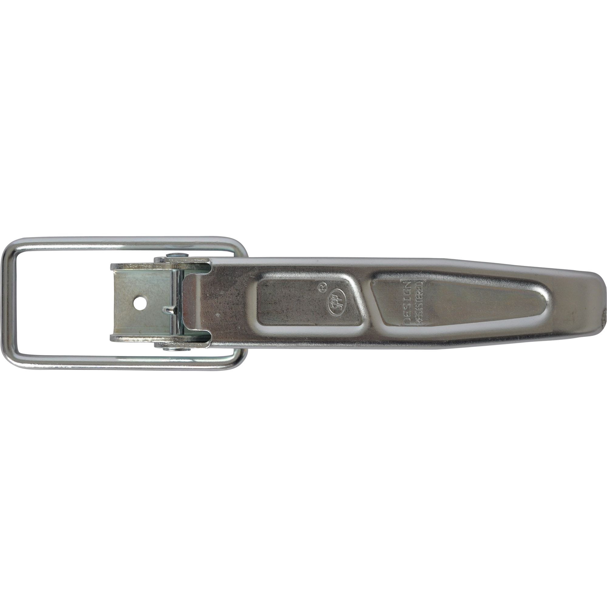 Fermeture excentrique à visser acier zingué boucle d'accroche en fer rond diam. 5mm Longueur totale 210 mm Hauteur 27 mm Trous fixation diam. 5 mm entraxe 80 mm