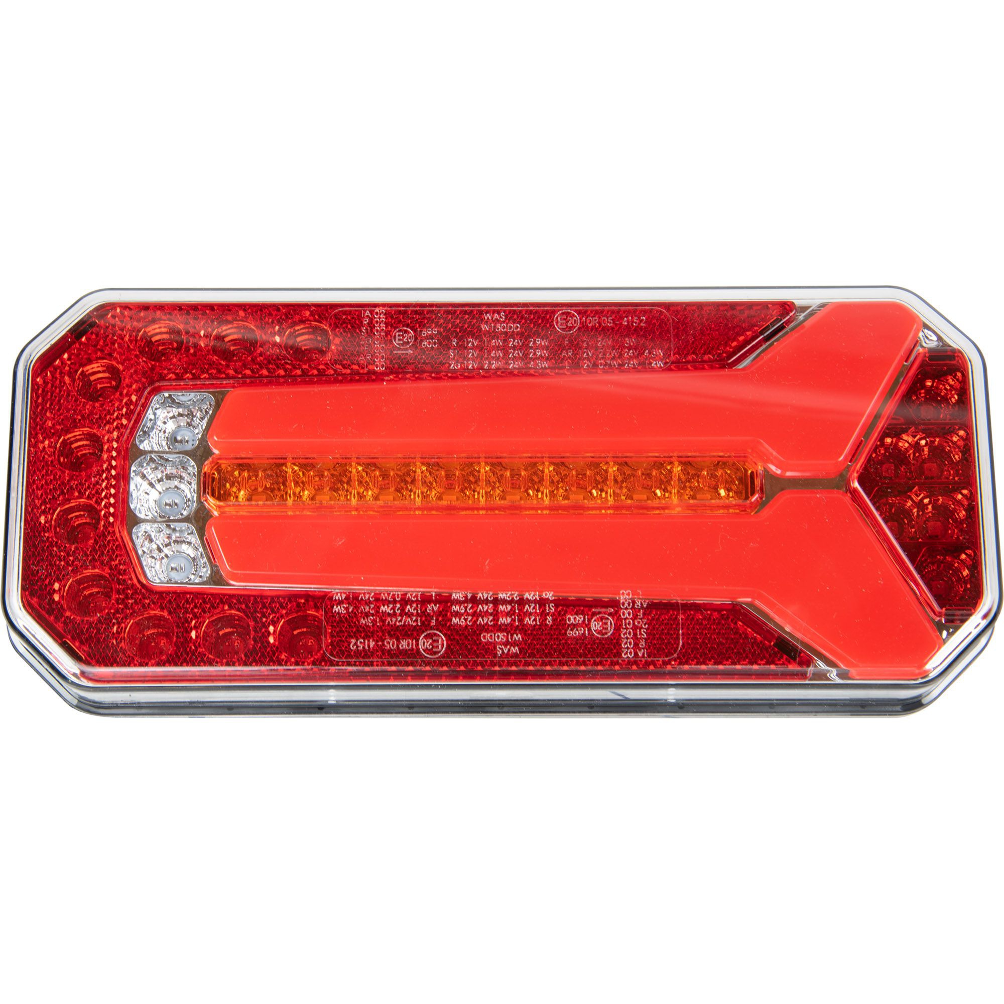 Feu arrière LED avec clignotant dynamique Coté gauche et droit Connecteur 5 broches Longueur 236 mm Hauteur 104 mm Epaisseur 40 mm Fonctions: Feu de position Feu stop Clignotant Eclaireur de plaque