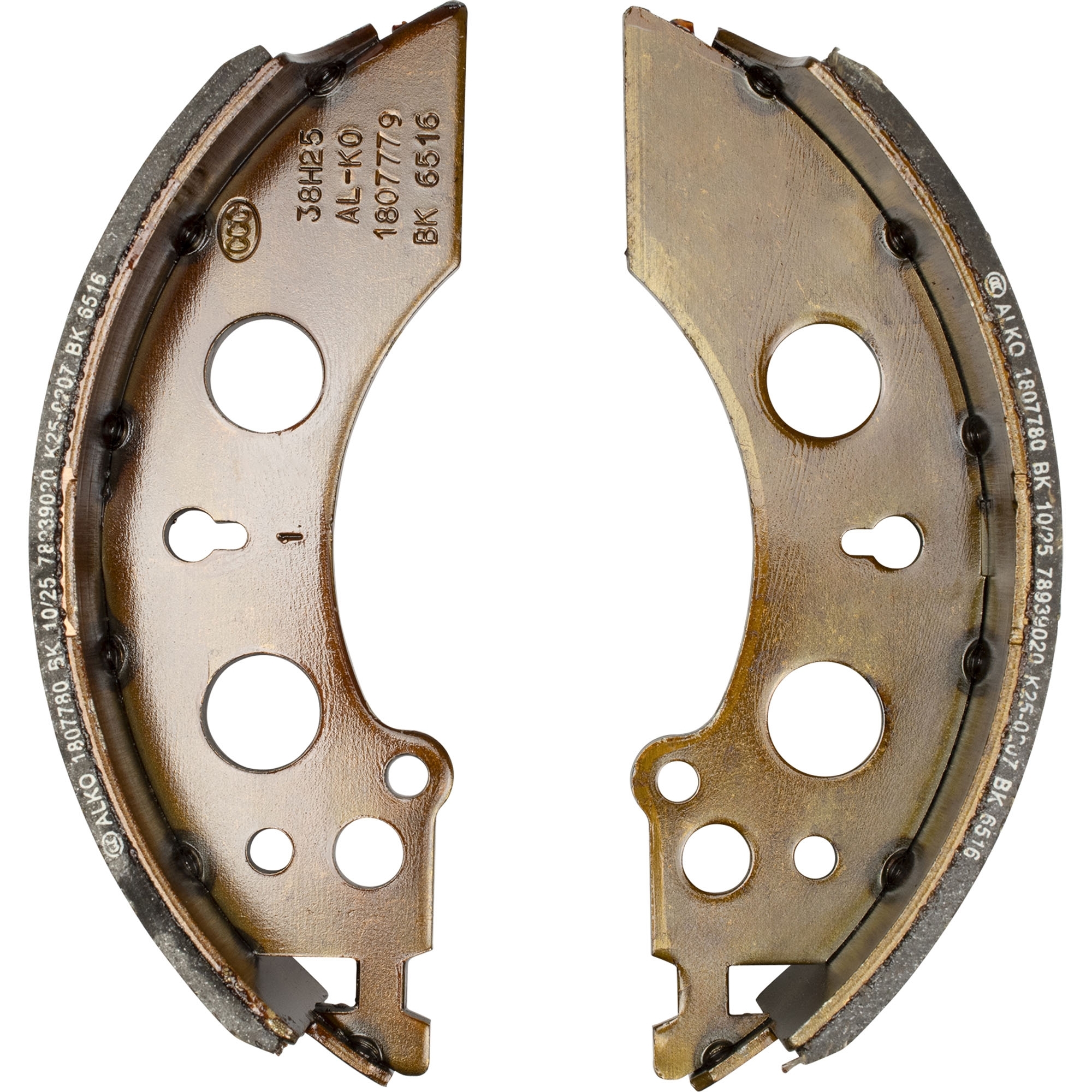 Jeu de mâchoires de frein AL-KO complet pour un essieu Type de frein 2050, 2051 Taille du frein 200 x 50 mm contenu 4 x mâchoires de frein 2 x ensemble de ressorts 2 x écarteurs 2 x mécanisme de rattrapage jeu des mâchoires 2 x demi-coquille pour flasque 2 x bascules de recul automatique 2 x écrous à creneaux avec goupille fendue 4 x bouchons en caoutchouc