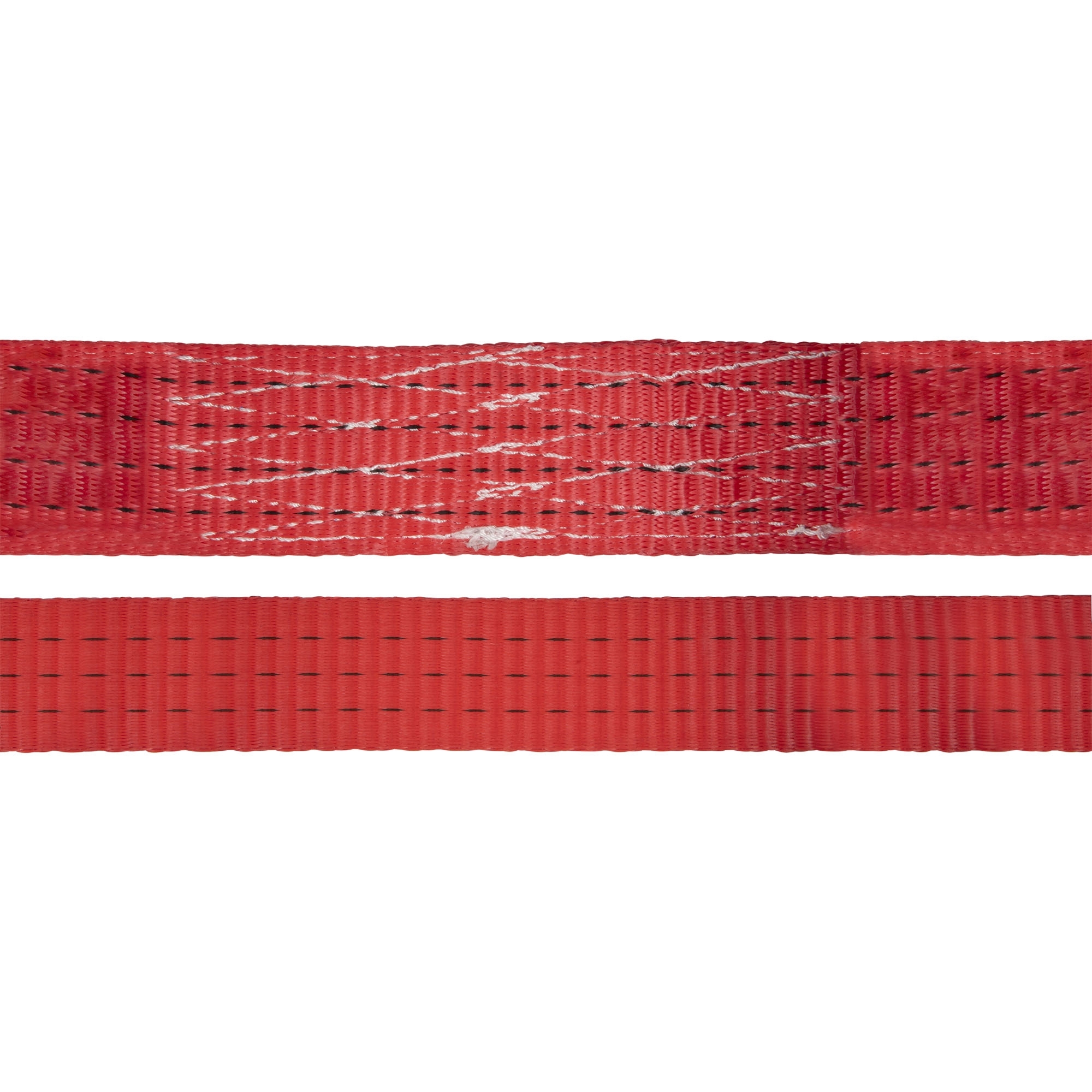 Sangle de roue 3 pièces à cliquet Largeur sangle 35 mm Résistance 1500 daN Couleur rouge Comprend 1 cliquet court (longueur 110 mm) avec crochet, 1 sangle avec crochet et sans couture d'arrêt, longueur 3000 mm et une sangle retour longueur 370mm avec 2 boucles