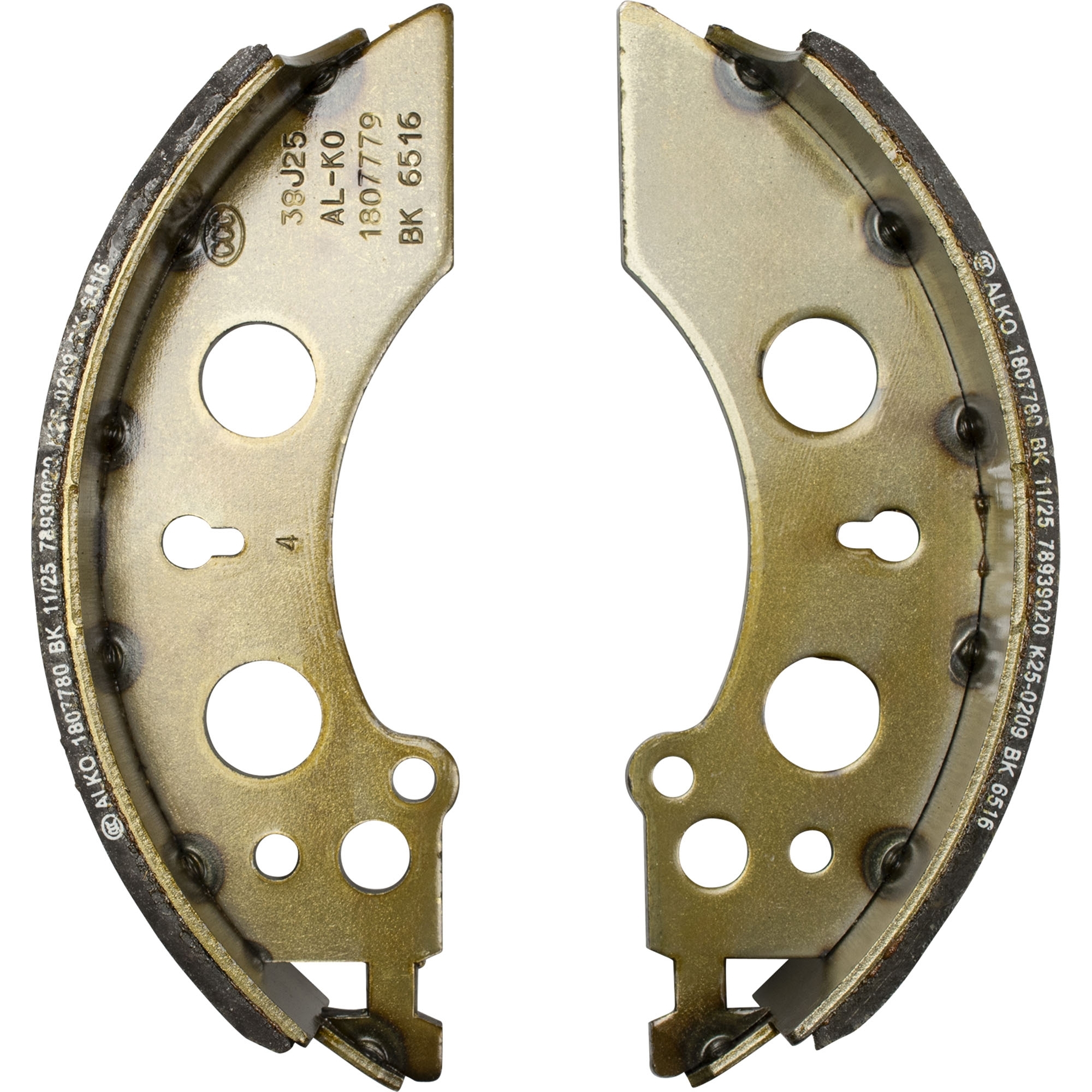 Jeu de mâchoires de frein AL-KO complet pour un essieu Type de frein 2050, 2051 Taille du frein 200 x 50 mm contenu 4 x mâchoires de frein 2 x ensemble de ressorts 2 x écarteurs 2 x mécanisme de rattrapage jeu des mâchoires 2 x demi-coquille pour flasque 2 x bascules de recul automatique 2 x écrous à creneaux avec goupille fendue 4 x bouchons en caoutchouc