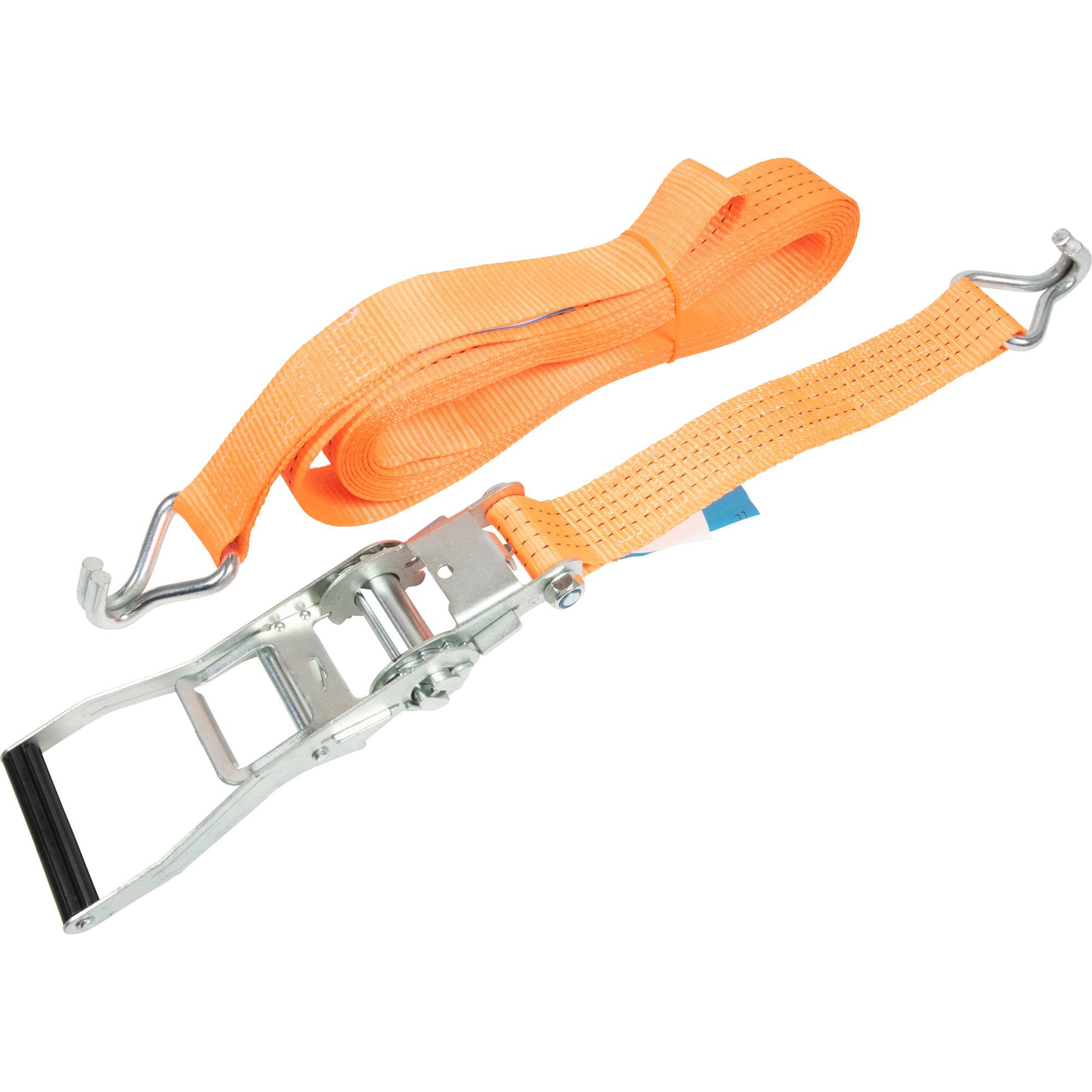 Sangle avec crémaillère pression 2-pce. avec crochet aigu Longueur 17000 mm Largeur 50 mm U 4000 daN LC 2000 daN Fabriqué selon DIN EN 12195-2 extra long