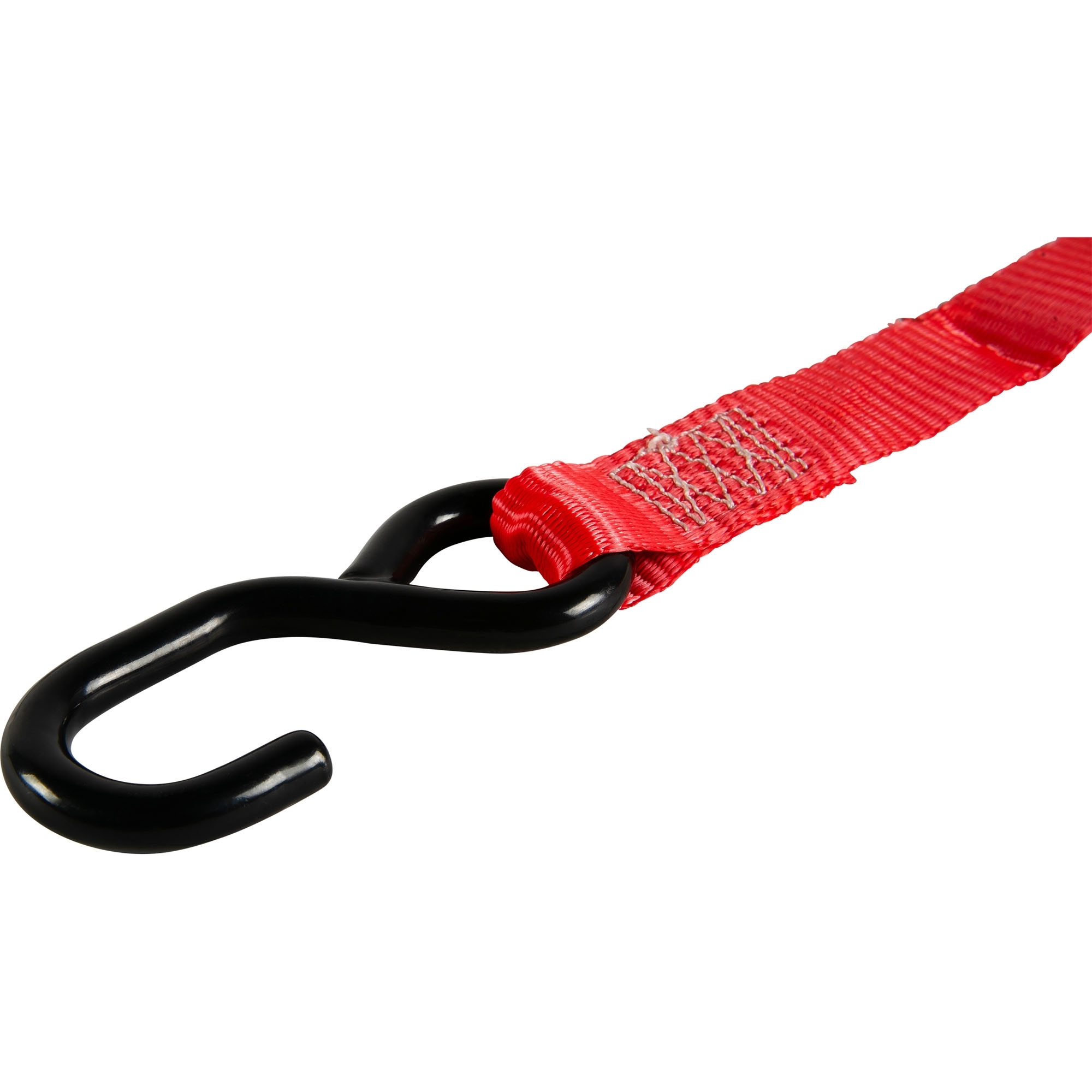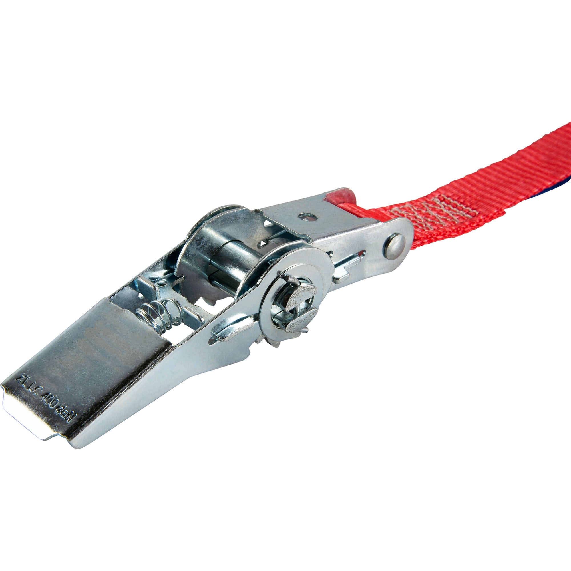 Sangle avec crémaillère pression 2-pce. avec crochet aigu Longueur 5000 mm Largeur 25 mm U 800 daN LC 400 daN Couleur rouge Fabriqué selon DIN EN 12195-2