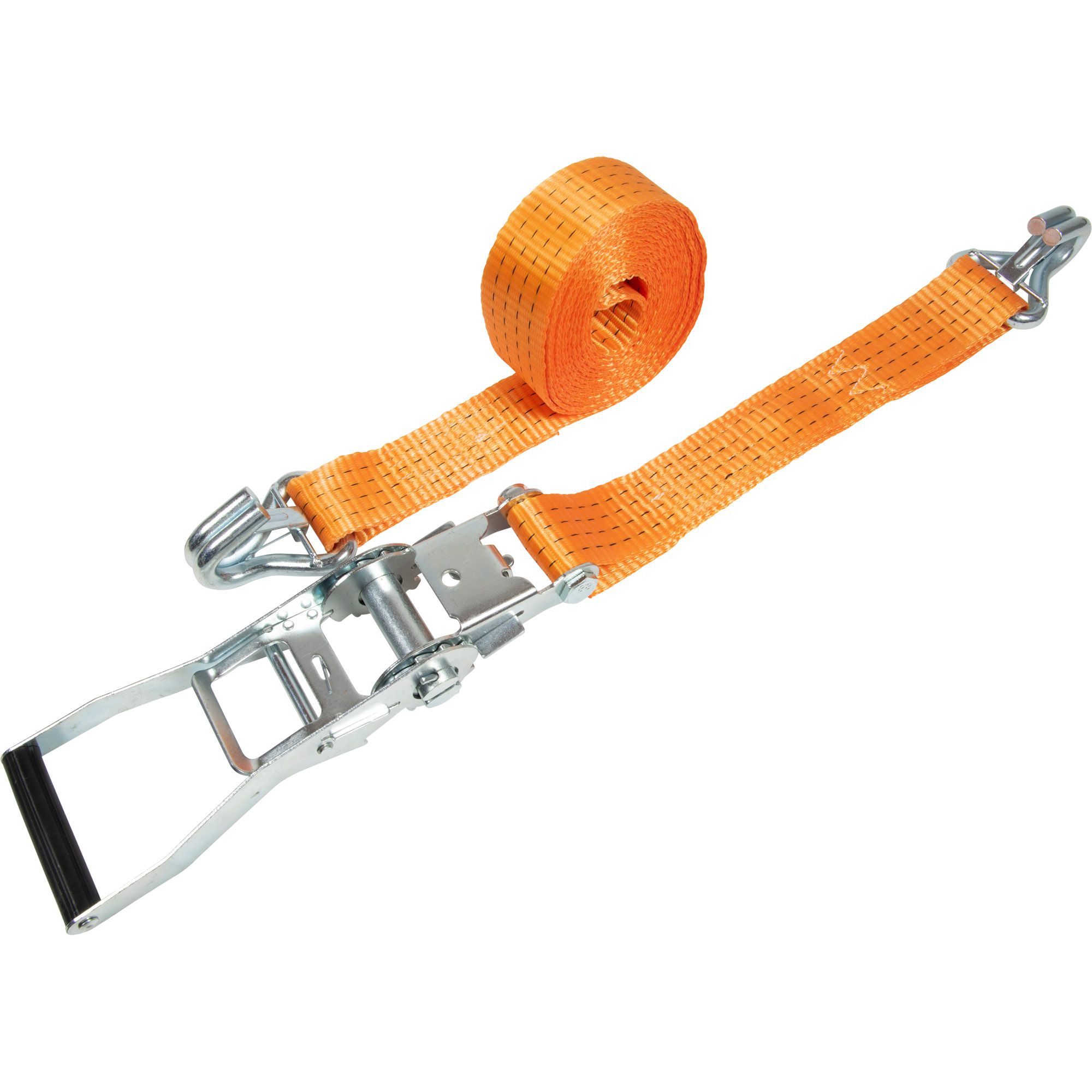 Sangle avec crémaillère pression 2-pce. avec crochet aigu et sauvegarde Longueur 6000 mm Largeur 50 mm U 4000 daN LC 2000 daN Couleur orange Fabriqué selon DIN EN 12195-2