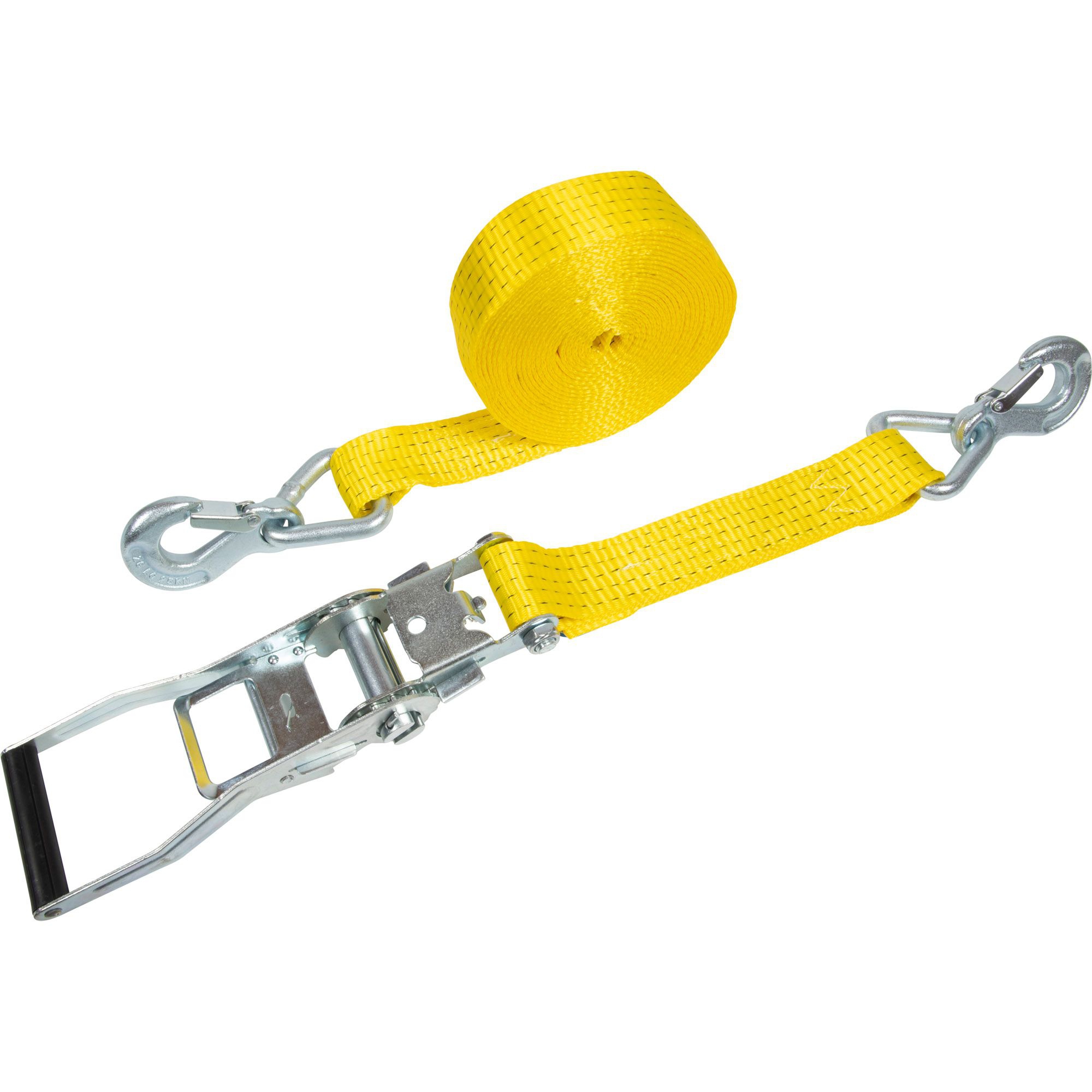 Sangle avec crémaillère pression 2-pce. avec crochet triangle et sauvegarde Longueur 8000 mm Largeur 50 mm U 5000 daN LC 2500 daN Fabriqué selon DIN EN 12195-2