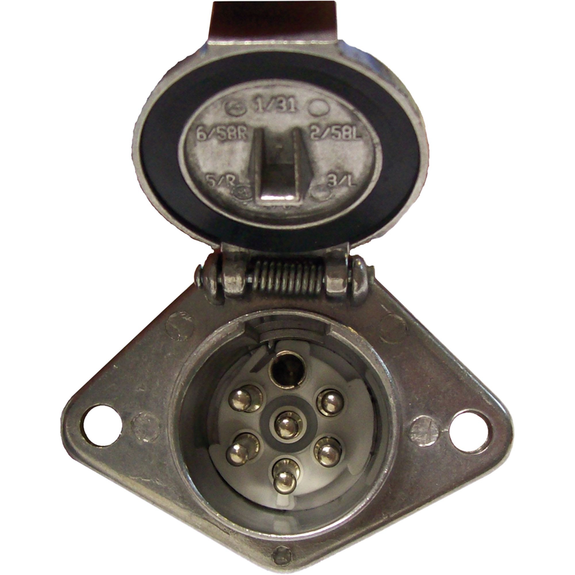 Socle femelle 7 plots 24 V, corps aluminium avec contact de coupure serrage des câbles sur broches par vis, Corps en aluminium Broches de contact en laiton Support broche sen PVC noir Branchement selon DIN 3731
