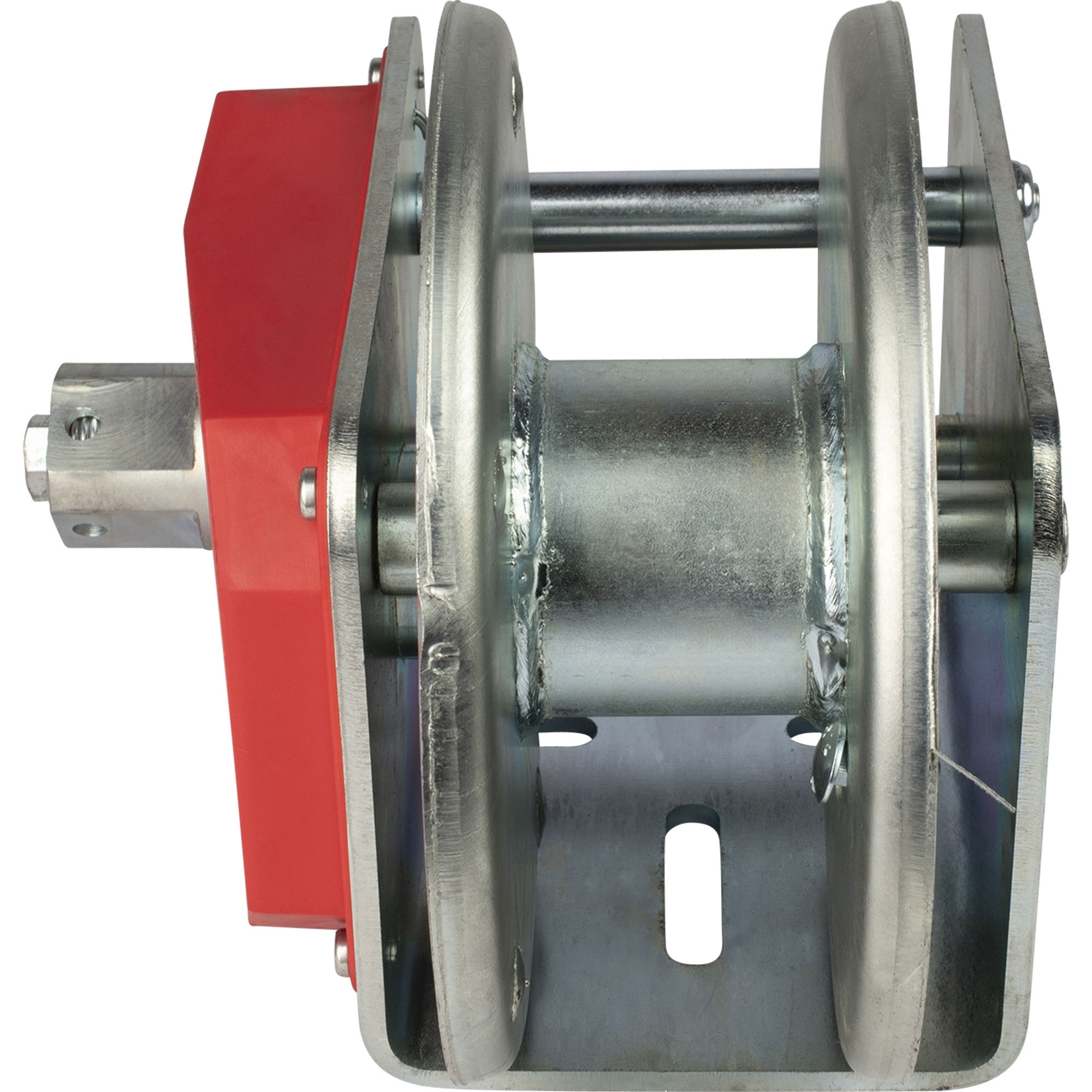 Treuil à main Type SSW 900/1 Sans câble / bande Traction max. 900 kg Réduction 8,75 : 1 Capacité du tambour 25 m (câble Ø 7 mm) Manivelle amovible Longueur manivelle 275 mm Avec roue libre Équipement Avec déroulement automatique Consigne de sécurité: Le treuil n'est pas destiné au levage de charge, sécurité de charge et transport de personnes.